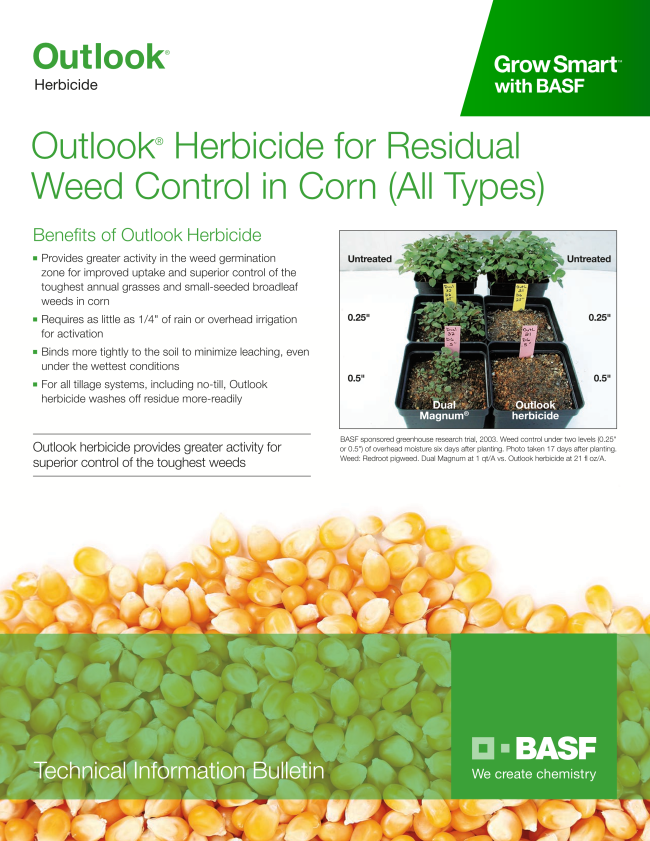 - Outlook® Herbicide, which Schoening said “…is our choice for impregnating fertilizer because it is safe to use on both corn and soybeans.”