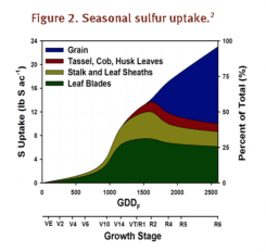 For corn, the S recommendation is 24-25 lb./yr. as a baseline. For growers with yield goals higher than 200-225 bu./ac., sulfur application should reach 30-35 lb./yr.