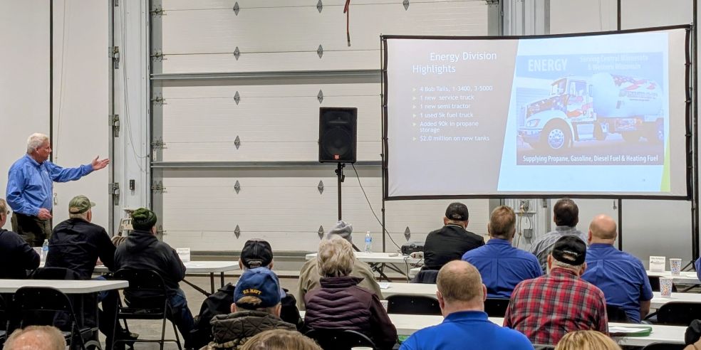 YOUR LAND, YOUR COMMUNITY, YOUR CO-OP. The meaning behind our tagline is we are grateful our patrons allow us to come on to their land, we are proud to work and live in this great community, and the co-op is owned by the patrons that use it. If you do business with us, it is your co-op. We appreciate our patrons for acting like owners by their support. Our annual meeting was held at our new shop in Ogilvie on April 2th, 2026. Thanks to all the patrons who attended our meeting. It was great to see the familiar faces.