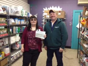 Scott Kemen of Federated Co-ops presented Dawn Berglund of Family Pathways Food Shelf in Sandstone a donation from Federated Co-ops along with a matching donation from the Land O’Lakes Foundation’s Feeding our Community Program 2015.