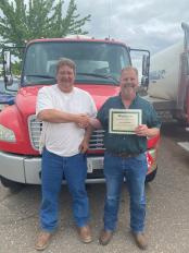 Propane Location Manager, Jim Gutzwiller, celebrated 35 years with the co-op this month. In the attached picture, Mark Grave congratulated Jim for his hard work and dedication to the team. He started his career on a route out of St. Michael. His first truck held 2500 gallons and he would average over 26 stops a day. Jim said he didn’t know anything about propane when he started. He didn’t even have a propane BBQ tank. He has sure learned a great deal over the last 35 years, and he has shared that knowledge with so many.